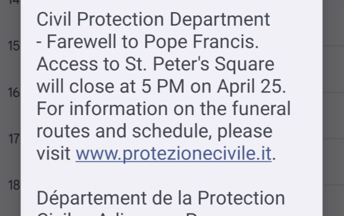 - Il messaggio avverte della chiusura di piazza San Pietro.